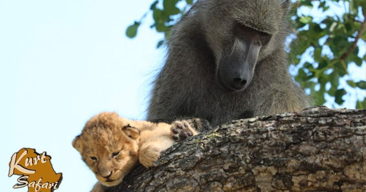 In The Lion King, Rafiki was nurturing to little Simba and seemed like a playful father-type figure, but real nature doesn’t usually play out that way. Schultz says the lion cub was likely left behind by his mother, who went out hunting when the baboon troop found him.