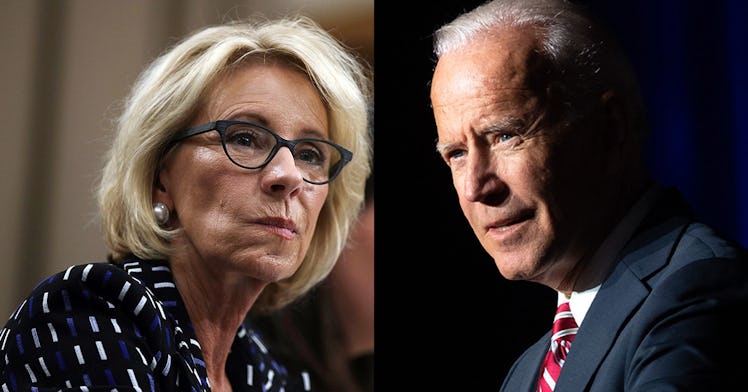 When President-elect Joe Biden was on the campaign trail, he campaigned time and time again on restoring Title IX regulations — a series of rules and guidelines for how school campuses in the K-12 and college sphere should deal with sexual assault allegations — that were stripped back under the Trump administration. Now that the President-elect is set to assume office on January 20, victims advocates, women’s organizations, and the President-elect’s own nonprofit to address sexual violence, “It’s On Us” are all starting to look at ways that Biden could undo Betsy DeVos’s damage to Title IX, which limited the avenues of redress sexual assault survivors had and bolstered the rights of those accused of sexual assault.