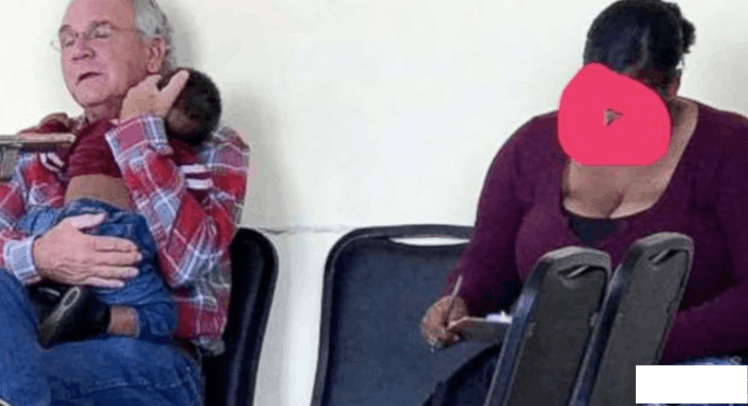 You may have seen this viral photo making the rounds on Facebook: an older white man rocks a baby while a black woman fills out paperwork in the waiting room of a doctor’s office. But, the story behind the photo is even better than the photo itself.
