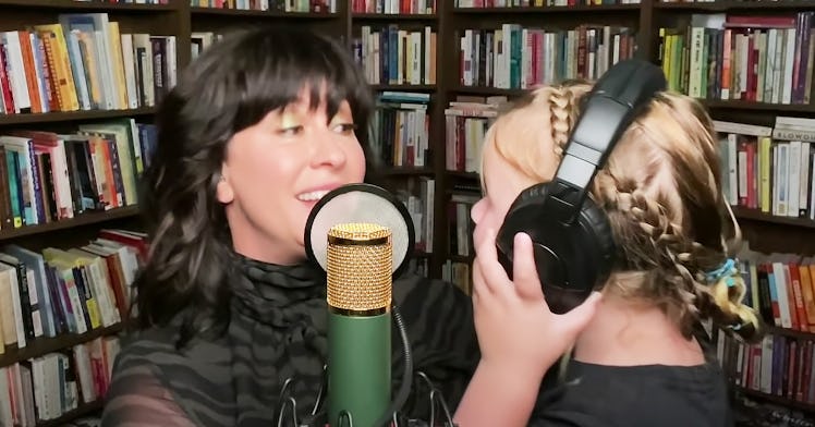And it turns out Alanis has the same situation. As the beloved singer-songwriter debuted her new song “Ablaze” on the Jimmy Fallon show, she was joined by her very young daughter, who, just like most kids hanging with their parents at home, randomly said “Hi mom,” and other very regular kid stuff, while Alanis was belting out her new song. Listen. I thought Alanis Morrisette was edgy AF when I was in high school. I used to blast “THANK U” over the speakers during closing time at my corporate bookstore job in 1999. Alanis is pretty cool. But, this small moment proves that there’s very little that is cooler than hitting that rare moment where your kid gets to be part of your day-to-day life in a way that is both very difficult to juggle and also, pretty damn sweet.