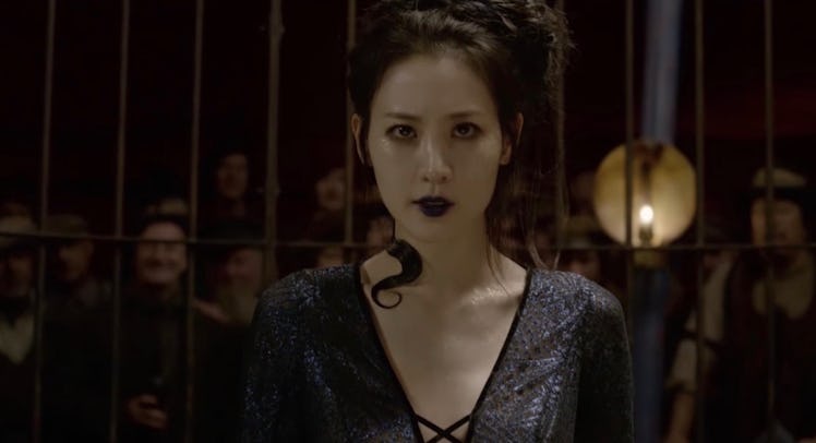 When Neville cut the head off of Voldemort’s beloved snake and last horcrux in Deathly Hallows, fans thought they’d seen the last of Nagini. People were shocked to see Nagini (Claudia Kim)—as a human, no less—in the Crimes of Grindelwald trailer. The problem is though, we got virtually no further information about Nagini. The trailer pretty much told us everything minus a few details. Fans already knew she was a Maledictus. She has a blood curse that will eventually cause her to turn into a snake forever.