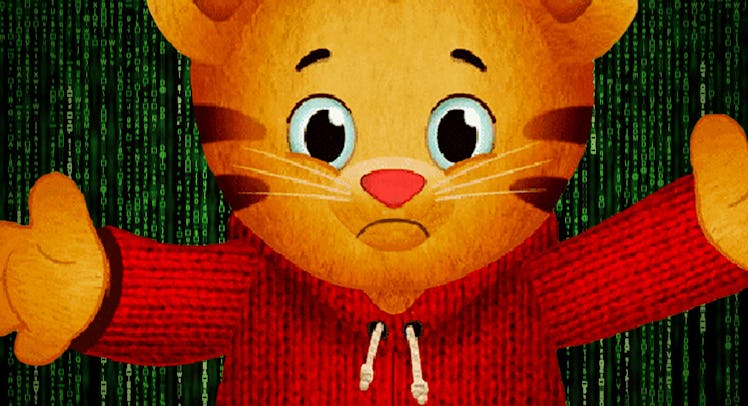 Because Daniel Tiger is a kind of sideways sequel to one aspect of Mister Rogers’ Universe, it’s easy to overlook the fact that it’s also very clearly part of The Matrix. It’s okay. This wasn’t obvious, at first, so don’t feel bad. But the secret is out now: The entire world of Daniel Tiger is built out of the puppet land of make-believe from Mister Rogers, which means, when you get down to the nitty-gritty ways in which that Daniel Tiger reality operates, it’s very clear that he — and at least a handful of his friends — are trapped in a simulation inside the Matrix.