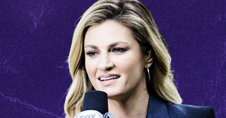 Being a middling sports reporter is easy. (What percent did you give? Was it 100? Was it more than 100?) But being a great sports reporter is hard. It’s not unlike being an athlete. You gotta get your shots off at the right time or stand up in the pocket or find the empty space. Whatever metaphor you choose, NFL reporter Erin Andrews is good at that. She’s the reporter who gets the ball when the clock is winding down. That’s why she’s Erin Andrews and you’re not.