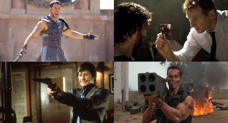 This weekend, Bruce Willis is once again returning to his action roots in the remake of the 1974 Charles Bronson film Death Wish. In it, Willis plays Paul Kersey, a father who resorts to taking matters into his own hands after his wife and daughter are attacked. Sound familiar? Well, that’s because vengeance-seeking, throat-punching paterfamilias have long been a staple of action movies.