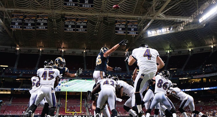 Rosburg says you need to dismiss the notion that special teams players aren’t great athletes. Pound-for-pound, they’re among the best — many of them just aren’t built to withstand the kind of hits other positions are required to take. Special teams players also possess freakish hand-eye coordination. “Punters need to have as good of hands as they do a leg,” he says. “You have to be able to control the ball, control the drop. It’s a 3-dimensional world. You drop the ball out there and you have to get your foot on it.”
