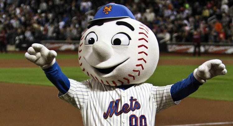 Like cargo shorts, family road trips, and shower sex, mascots are mostly better in theory than in practice. Having an animal or warrior or vague concept represent a team seems like a good idea, but most of the time the costumes are uninspired (DJ Kitty? WTF does that have to do with the Tampa Bay Rays?) awkward (Wally the Green Monster is a wack-ass muppet) or just creepy (looking at you, Junction Jack). These mascots are supposed to appeal to kids, but who wants a high-five from a Bald Eagle that looks like he’s always in pain or a terrifying fish with arms and legs? At the end of the day, there’s only one Major League Baseball mascot truly worth rooting for: Mr. Met. The baseball-headed mascot is beloved by kids, parties with celebrities, has a smokin’ hot wife, and, best of all, is not afraid of a good old fashioned sports feud. Here’s why Mr. Met is the greatest mascot of all.