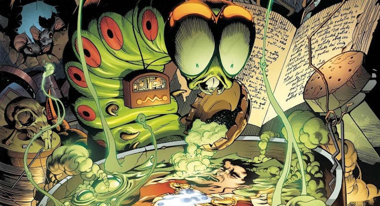 Unless you have deep knowledge of the Shazam!/Captain Marvel (yes, there’s an old DC character named Captain Marvel totally unrelated to um…Marvel’s Captain Marvel) comic book mythology, you are probably wondering what the hell is going on. Fortunately, we have an answer. This malevolent bug is Mr. Mind, who has been described as “a cartoonish worm possessing an intelligence beyond that of human beings.” In the comics, his powers include telepathy, hypnosis, and the ability to spin super-strong silk at a high speed.