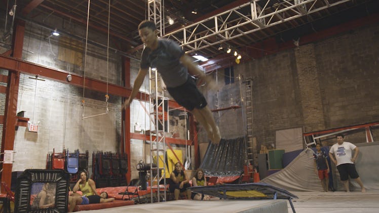 Justin Ruben, a father of Streb students, says, “The art of parenting is preventing death while allowing kids to take risks and hurt themselves.” Some of the best spotting he’s ever seen was while watching the safety precautions that the students were practicing. Justin says he’s much more worried about his children jumping on his bed in their apartment.